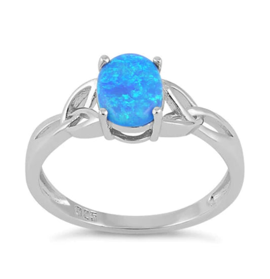 Blue Lab Opal Celtic Sterling Silver Ring