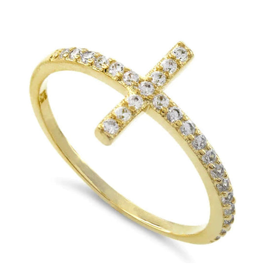 14K Gold Cross Ring With CZ Diamonds
