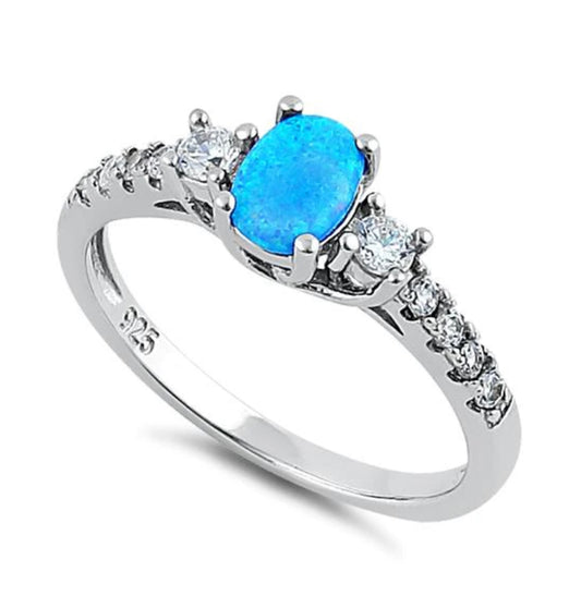 Blue Lab Opal CZ Diamond 925 Sterling Silver Ring